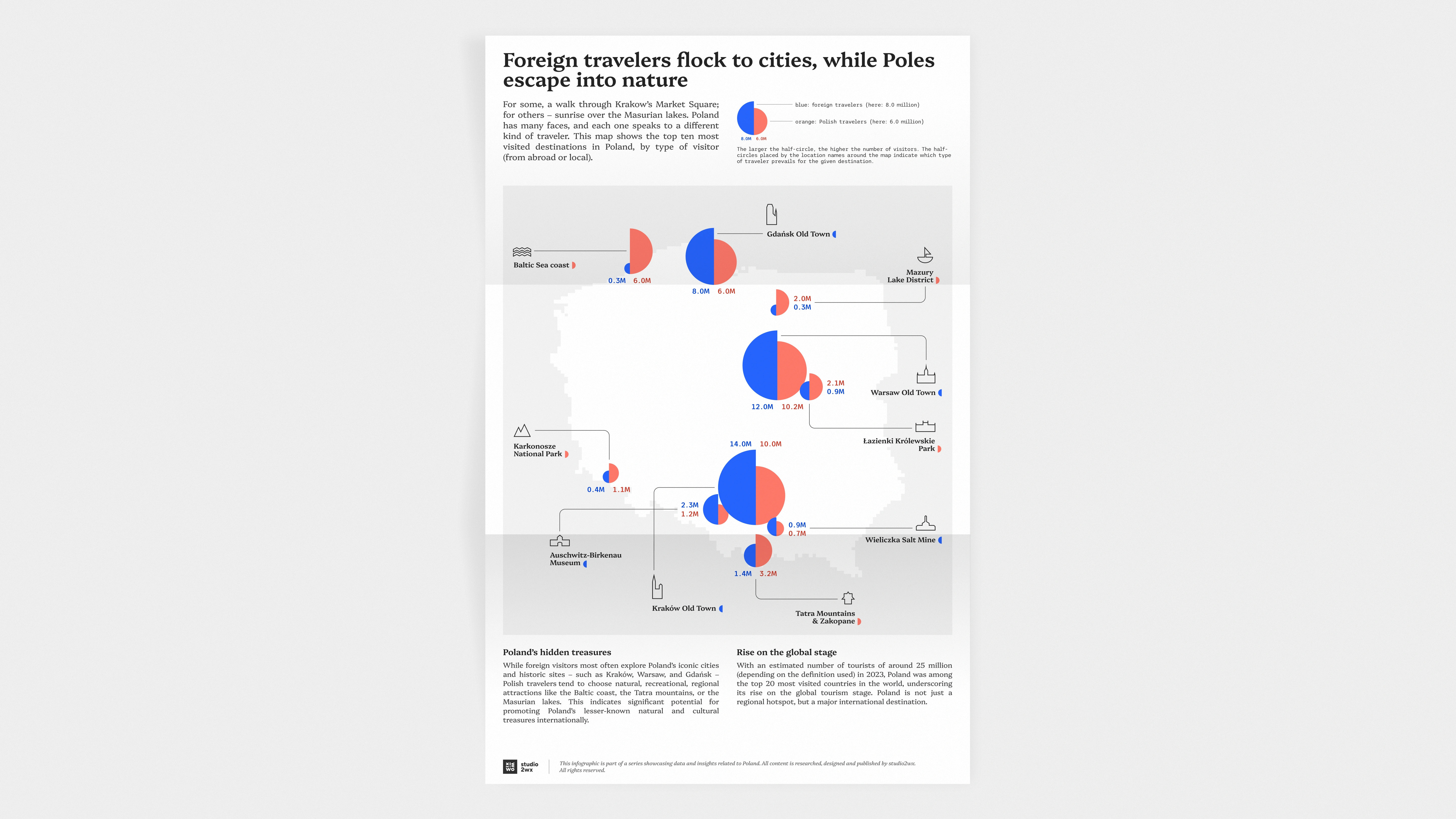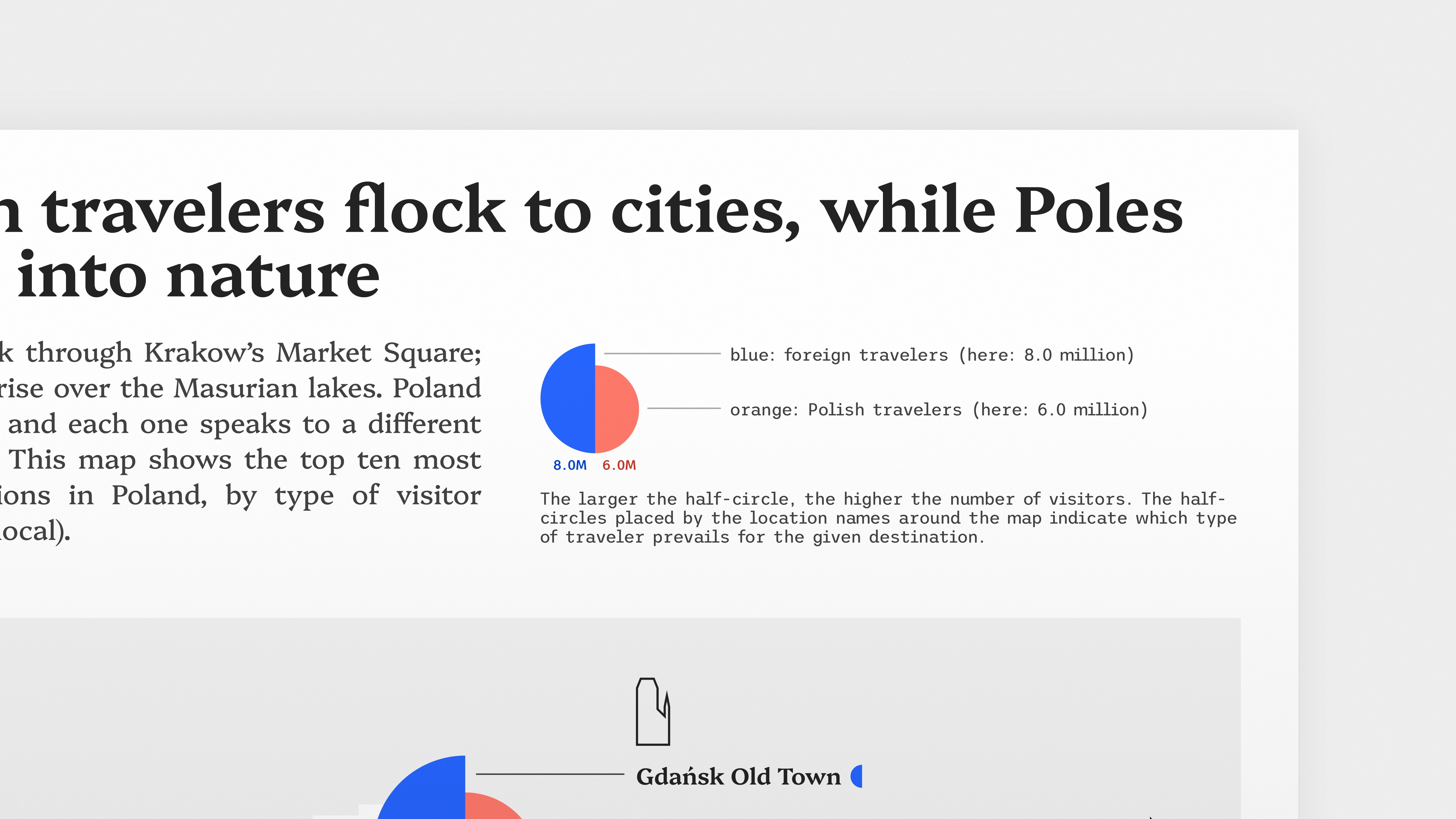 For our first design, we’re taking a look at the most visited destinations in our country – and checking if they’re more popular with Polish or foreign travelers.