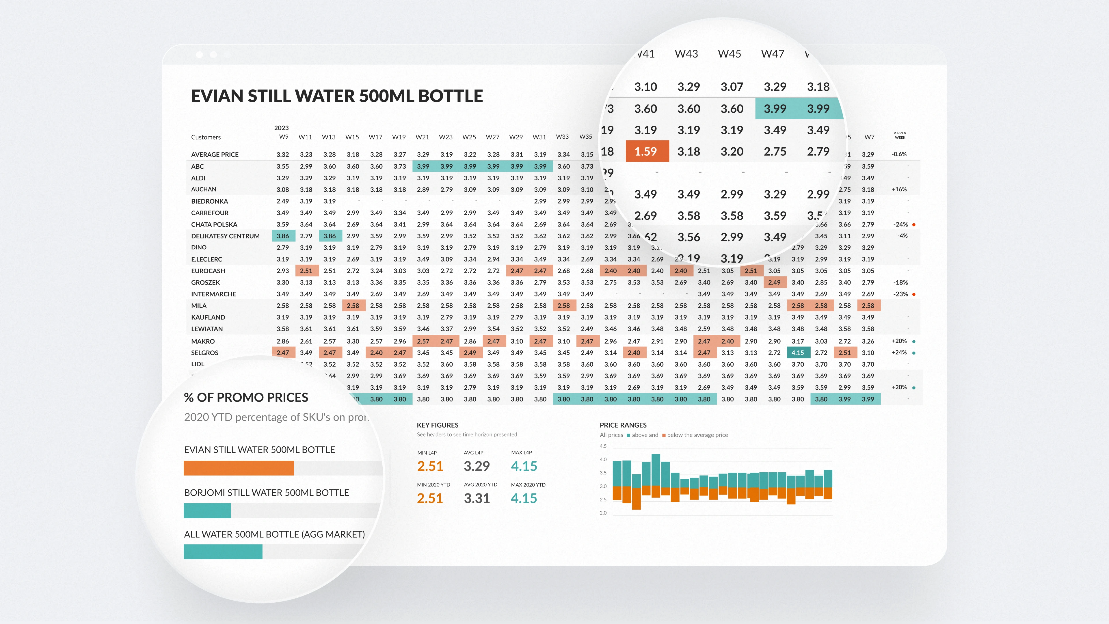 From the very beginning, we work closely with you to define the scope — product lists, store coverage, and exact metrics — so that results are always relevant and actionable. We capture both quantitative and qualitative information: prices, promotions, on-shelf availability, shelf share, promotion types, shelf presentation, and photo documentation. Need something more? We’ll include it.